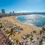Deluxe Apartment Las Canteras Beach设有大厨房和配写字台 和电视的客房. 它距离pena la vieja550米.公寓附近还有埃尔德尔科技博物馆.